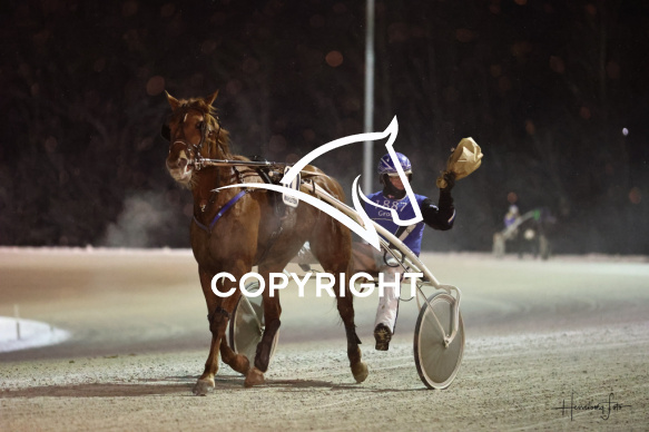 - Beskrivelse: KANON ÅSTRUP med Mads Henriksen vinder dagens 5 løb. Amerikanerløb m. justering af startspor Spar Nord Arena-Aalborg Væddeløbsbane d. 3/1-2026. Fotograf: Hesselborg Foto