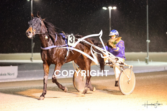 - Beskrivelse: FLYING SHADOW med Jacob Christiansen vinder dagens 9 og sidste løb. Formløb Amatør/Jockey Spar Nord Arena-Aalborg Væddeløbsbane d.3/1-2026. Fotograf: Hesselborg Foto