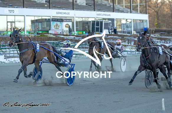 - Beskrivelse: HOLGER J J med Ulrik Christoffersen 2. løbs vinder,, på Charlottenlund d. 2026-01-11. Photo: Burt Seeger.