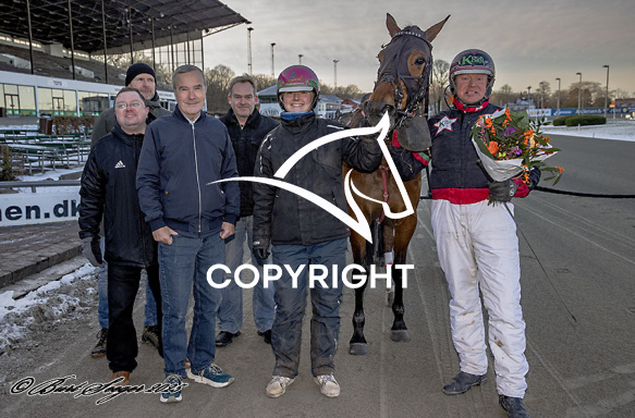 - Billede Beskrivelse: ISAK LASER med Anders F. Jensen 6. løbs vinder,, på Charlottenlund d. 2026-01-11. Photo: Burt Seeger.