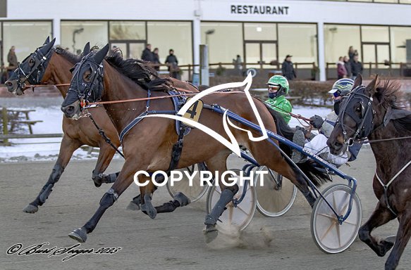 - Billede Beskrivelse: LECHUZA med Ulrik Christoffersen 7. løbs vinder,, på Charlottenlund d. 2026-01-11. Photo: Burt Seeger.