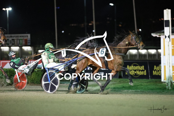 - Beskrivelse: JACKS CROSS med Jeppe Juel vinder dagens 5 løb. Fordel hopper. Spar Nord Arena-Aalborg Væddeløbsbane d. 19/1-2026. Fotograf: Hesselborg Foto