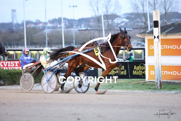 - Beskrivelse: Vinderen af 1 løb blev LORENZO TOFT med Jeppe Juel. Amerikanerløb m. justering af startspor Spar Nord Arena-Aalborg Væddeløbsbane d.23/1-2026. Fotograf: Hesselborg Foto