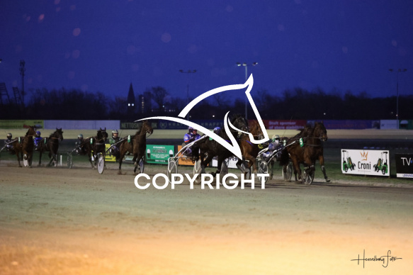 - Beskrivelse: JACKPOT MAGIC med Anders Pedersen er vinderen af dagens 4 løb. Amerikanerløb m. justering af startspor Spar Nord Arena-Aalborg Væddeløbsbane d.23/1-2026. Fotograf: Hesselborg Foto