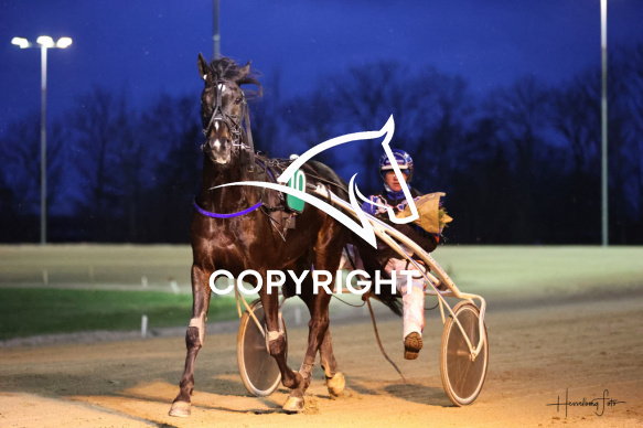 - Beskrivelse: JACKPOT MAGIC med Anders Pedersen er vinderen af dagens 4 løb. Amerikanerløb m. justering af startspor Spar Nord Arena-Aalborg Væddeløbsbane d.23/1-2026. Fotograf: Hesselborg Foto