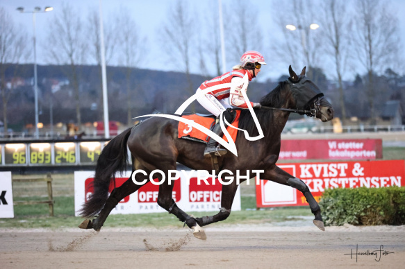 - Beskrivelse: GRANTORINO FONT med Michelle Mønster vinder dagens 6 løb. Monteløb - Amerikanerløb Spar Nord Arena-Aalborg Væddeløbsbane d. 23/1-2026. Fotograf: Hesselborg Foto