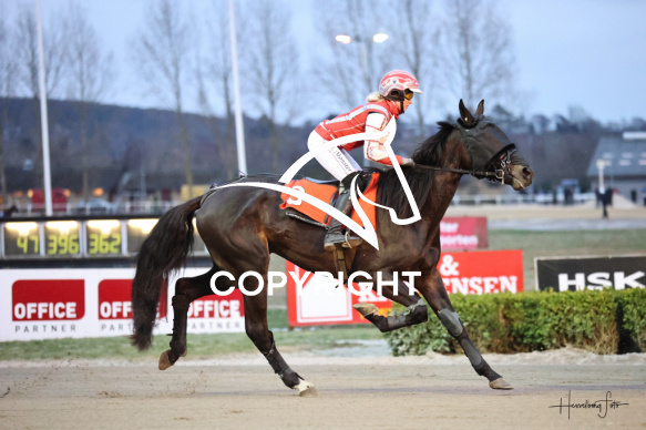 - Beskrivelse: GRANTORINO FONT med Michelle Mønster vinder dagens 6 løb. Monteløb - Amerikanerløb Spar Nord Arena-Aalborg Væddeløbsbane d. 23/1-2026. Fotograf: Hesselborg Foto