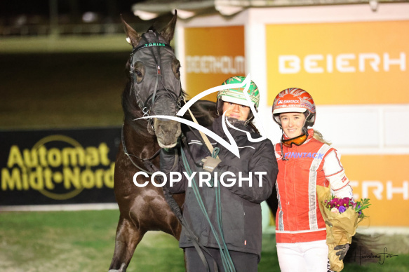 - Beskrivelse: GRANTORINO FONT med Michelle Mønster vinder dagens 6 løb. Monteløb - Amerikanerløb Spar Nord Arena-Aalborg Væddeløbsbane d. 23/1-2026. Fotograf: Hesselborg Foto