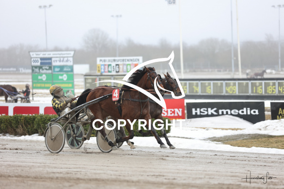 - Beskrivelse: PASTOR PETE med Birger Jørgensen vandt dagens 3 løb. Amerikanerløb m. justering af startspor Spar Nord Arena-Aalborg Væddeløbsbane d.21/2-2026. Fotograf: Hesselborg Foto