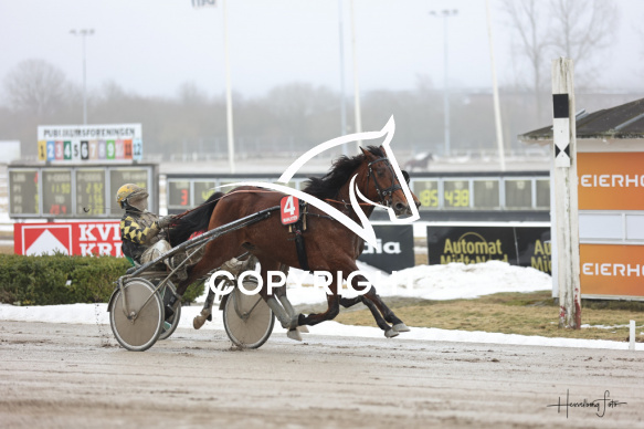 - Beskrivelse: PASTOR PETE med Birger Jørgensen vandt dagens 3 løb. Amerikanerløb m. justering af startspor Spar Nord Arena-Aalborg Væddeløbsbane d.21/2-2026. Fotograf: Hesselborg Foto