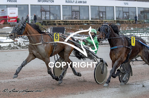 - Billede Beskrivelse: LEO SUS med Rene Kjær 1. løbs vinder,, på Charlottenlund d. 2026-02-22. Photo: Burt Seeger.