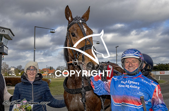 - Billede Beskrivelse: LIONEL med Rene Jonassen 3. løbs vinder,, på Charlottenlund d. 2026-03-01. Photo: Burt Seeger.