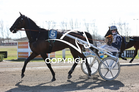 - Beskrivelse: Løb 2 blev vundet af Casper M. Nielsen med Just Hans Amerikanerløb - Hurtigklassen Spar Nord Arena-Aalborg Væddeløbsbane d.21/3-2026. Fotograf: Hesselborg Foto