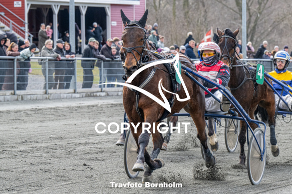 - Beskrivelse: Ismael F Boko med John Gommans Bornholms Brand Park 4 april 2026 Fotograf Torben Ager - Travfoto Bornholm