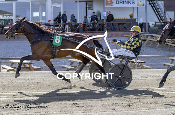 - Billede Beskrivelse: KAXI BROGÅRD med Birger Jørgensen 4. løbs vinder,, på Charlottenlund d. 2026-04-05. Photo: Burt Seeger.