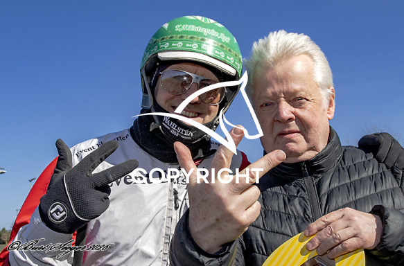 - Billede Beskrivelse: Rene Kjær-Kim Kærslund efter 7. løbs vinder,, på Charlottenlund d. 2026-04-05. Photo: Burt Seeger.