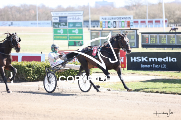 - Beskrivelse: NOBBY STILES med Jeppe Juel vandt dagens 3 løb. Amerikanerløb. Spar Nord Arena-Aalborg Væddeløbsbane d.6/4-2026. Fotograf: Hesselborg Foto