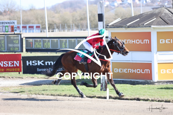 - Beskrivelse: JERRY med Camilla Boeck Munk vinder dagens 7 løb. Monteløb - Amerikanerløb. Spar Nord Arena-Aalborg Væddeløbsbane d.6/4-2026. Fotograf: Hesselborg Foto