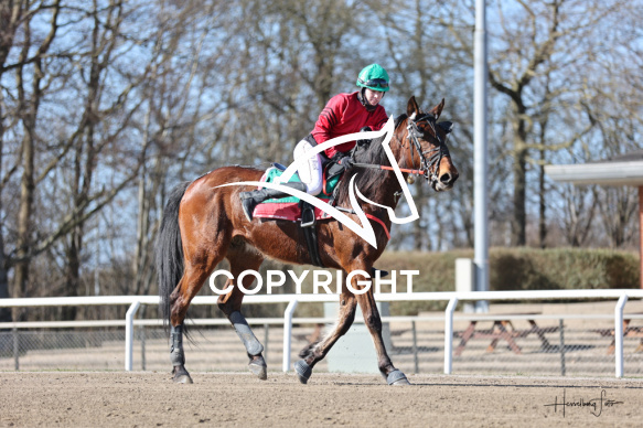 - Beskrivelse: JERRY med Camilla Boeck Munk vinder dagens 7 løb. Monteløb - Amerikanerløb. Spar Nord Arena-Aalborg Væddeløbsbane d.6/4-2026. Fotograf: Hesselborg Foto