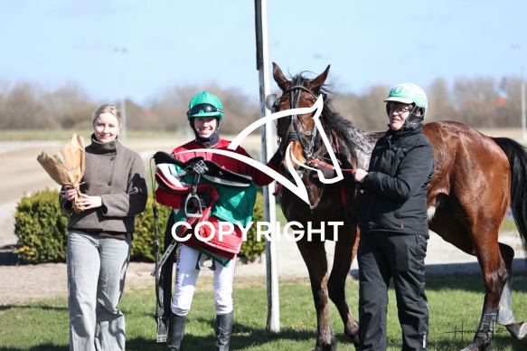 - Beskrivelse: JERRY med Camilla Boeck Munk vinder dagens 7 løb. Monteløb - Amerikanerløb. Spar Nord Arena-Aalborg Væddeløbsbane d.6/4-2026. Fotograf: Hesselborg Foto