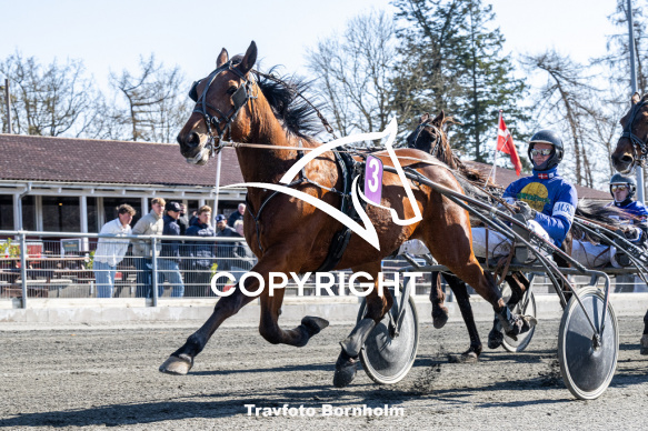 - Beskrivelse: Fendi Draviet med Mads K Mogensen Bornholms Brand Park 11 april 2026 Fotograf Torben Ager - Travfoto Bornholm