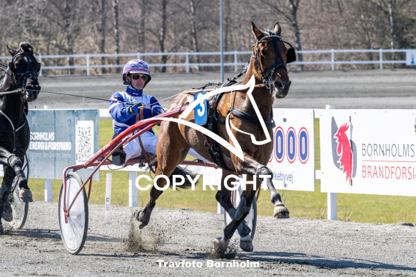- Beskrivelse: Kåsgård med Niclas Steinlain Bornholms Brand Park 11 april 2026 Fotograf Torben Ager - Travfoto Bornholm