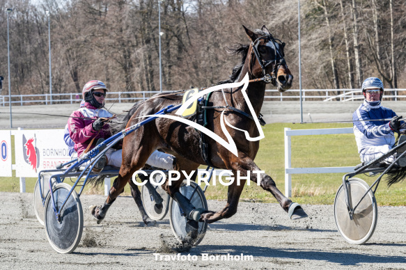 - Beskrivelse: Lau Silk med Frank Mikkelsen Bornholms Brand Park 11 april 2026 Fotograf Torben Ager - Travfoto Bornholm