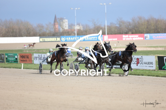 - Beskrivelse: Løb 2 blev vundet af MASTER CHIEF med Casper M. Nielsen. Amerikanerløb m. justering af startspor. Spar Nord Arena-Aalborg Væddeløbsbane d.16/4-2026. Fotograf: Hesselborg Foto