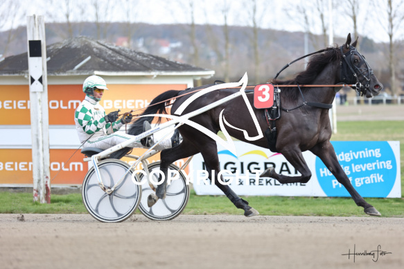 - Beskrivelse: PRECIOUS BOY A J med Birger Jørgensen vandt dagens 3 løb. Amerikanerløb m. justering af startspor Spar Nord Arena-Aalborg Væddeløbsbane d.16/4-2026. Fotograf: Hesselborg Foto