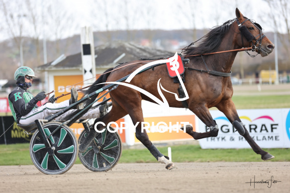 - Beskrivelse: PRECIOUS BOY A J med Birger Jørgensen vandt dagens 3 løb. Amerikanerløb m. justering af startspor Spar Nord Arena-Aalborg Væddeløbsbane d.16/4-2026. Fotograf: Hesselborg Foto