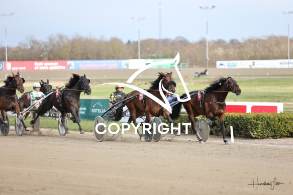 - Beskrivelse: PRECIOUS BOY A J med Birger Jørgensen vandt dagens 3 løb. Amerikanerløb m. justering af startspor Spar Nord Arena-Aalborg Væddeløbsbane d.16/4-2026. Fotograf: Hesselborg Foto