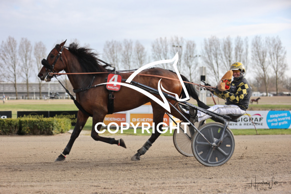 - Beskrivelse: PRECIOUS BOY A J med Birger Jørgensen vandt dagens 3 løb. Amerikanerløb m. justering af startspor Spar Nord Arena-Aalborg Væddeløbsbane d.16/4-2026. Fotograf: Hesselborg Foto