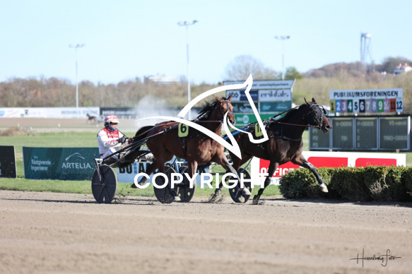 - Beskrivelse: Fordel hopper og 3-åringer Vinderen af 1 løb blev KOMSÅLANGBORG med Knud Mønster. Fordel hopper og 3-åringer. Spar Nord Arena-Aalborg Væddeløbsbane d.23/4-2026. Fotograf: Hesselborg Foto