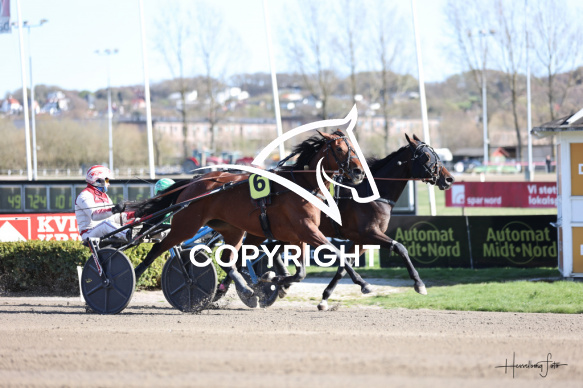 - Beskrivelse: Fordel hopper og 3-åringer Vinderen af 1 løb blev KOMSÅLANGBORG med Knud Mønster. Fordel hopper og 3-åringer. Spar Nord Arena-Aalborg Væddeløbsbane d.23/4-2026. Fotograf: Hesselborg Foto