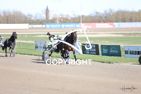 - Beskrivelse: Løb 2 blev vundet af LEVI WYNN med Flemming Jensen. Fordel hopper og 3-åringer. Spar Nord Arena-Aalborg Væddeløbsbane d.23/4-2026. Fotograf: Hesselborg Foto