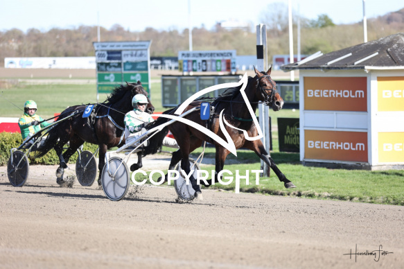 - Beskrivelse: Løb 2 blev vundet af LEVI WYNN med Flemming Jensen. Fordel hopper og 3-åringer. Spar Nord Arena-Aalborg Væddeløbsbane d.23/4-2026. Fotograf: Hesselborg Foto