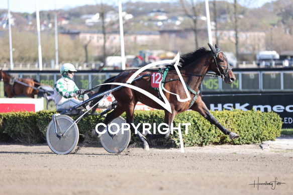 - Beskrivelse: SHOWMAN med Flemming Jensen vandt dagens 3 løb. Fordel hopper. 23/4-2026 Fotograf: Hesselborg Foto Spar Nord Arena-Aalborg Væddeløbsbane